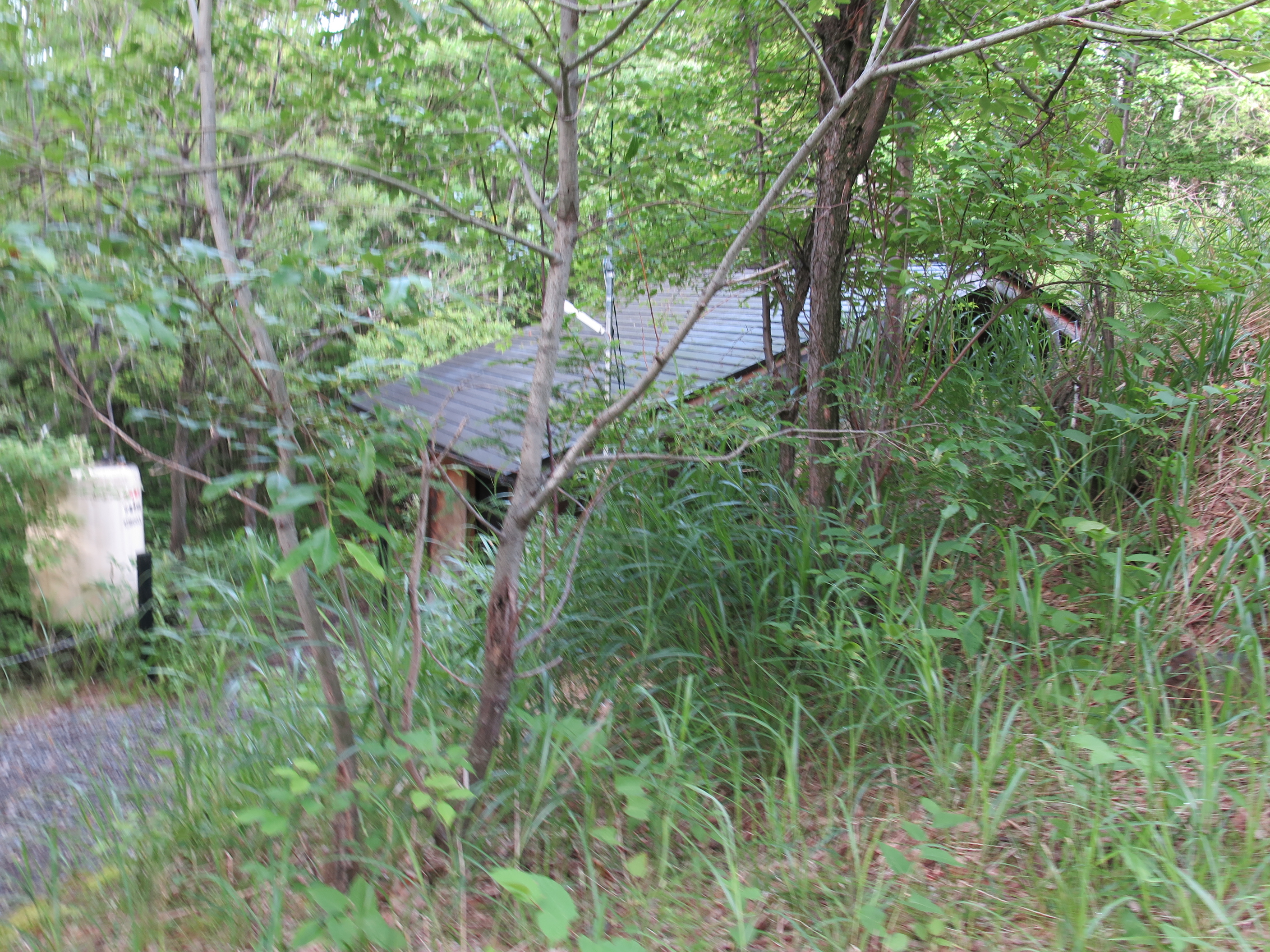 緑の中に入っていきます、写真で見ると怖そうな道ですが、実際にはただの砂利道で割と開けています。