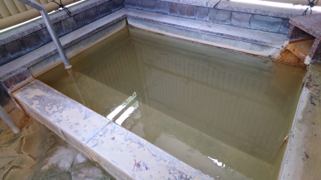 さらに外には露天風呂がありましたが、こちらは新しい湯の投入もされておらず冷え切っていたので入浴せず。