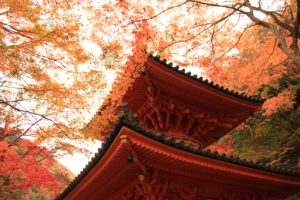 これが大威徳寺の多宝塔で牛滝山紅葉の象徴の建造物で重要文化財指定されています。